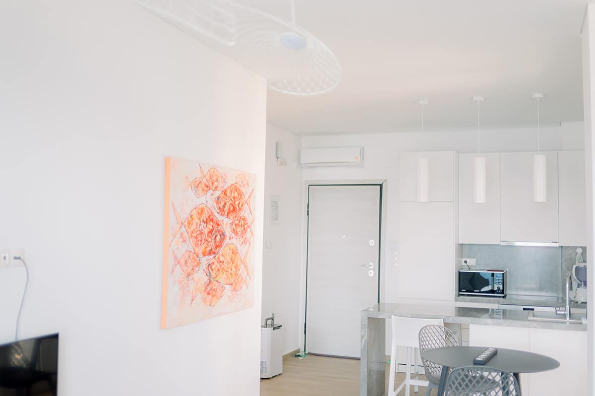 The room features a King-sized bed dressed in high-quality linens, ensuring a restful night’s sleep. Expansive windows allow plenty of natural light to fill the space, while offering breathtaking views of the nearby sea. The en-suite bathroom includes a spacious walk-in shower, complimentary toiletries, and freshly laundered towels. This room is perfect for leisure and business travelers alike, providing both comfort and convenience.